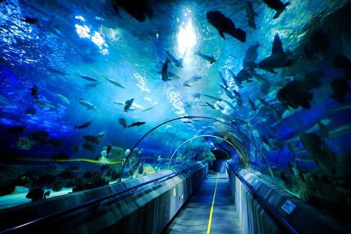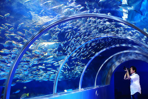 世界看到很多奇形怪状的生物,鲸鱼,鲨鱼,水母,海豚。但是在海上游泳的时候,根本不见这些生物。海底世界真的是挖在海底,还是人造巨型水缸?